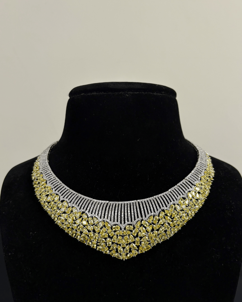 Rani Sa Citrine Diamond Necklace | Rhodium Plating