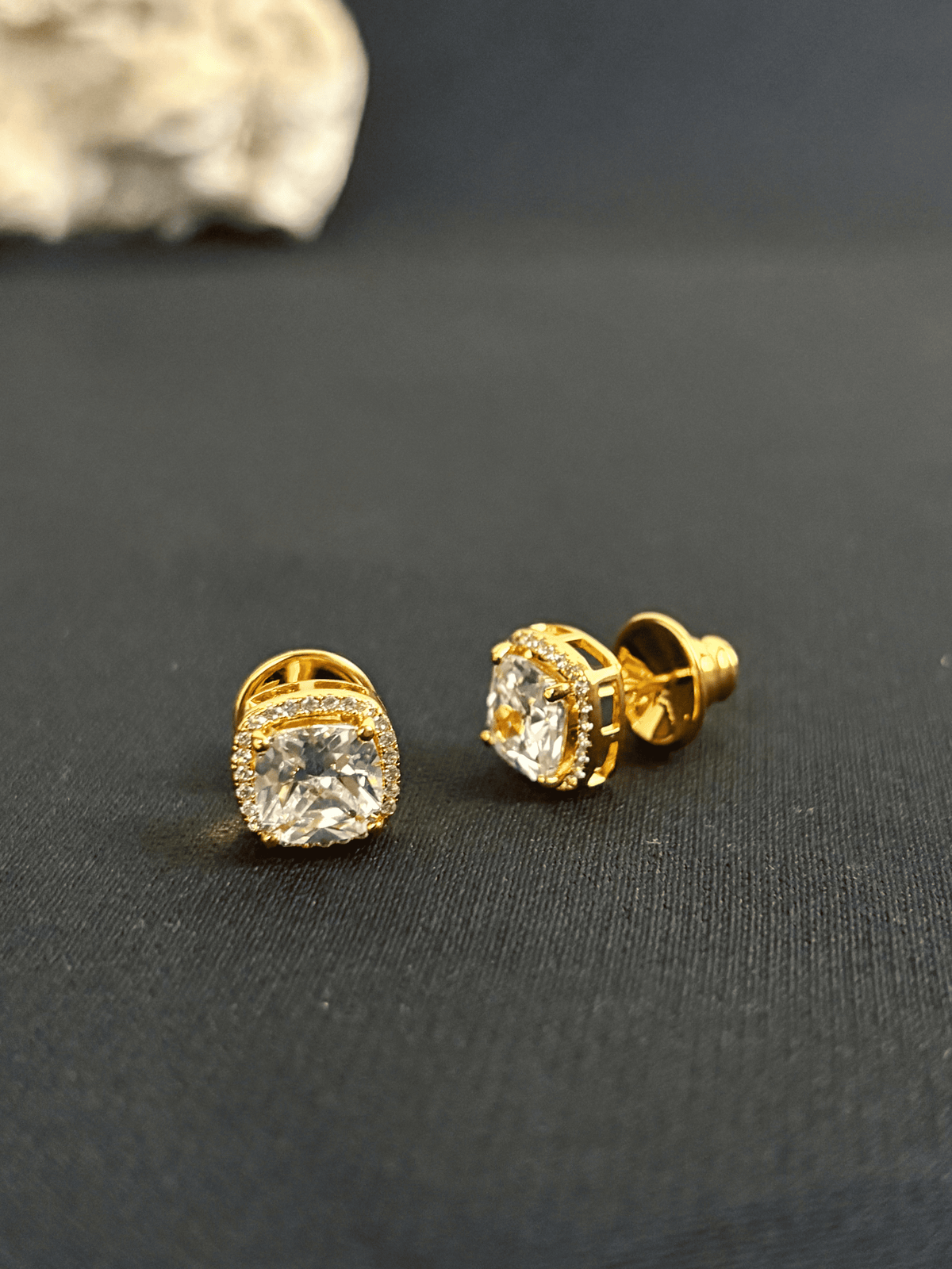 3 Carat Square Cut Diamond Studs | 18K Gold Plating