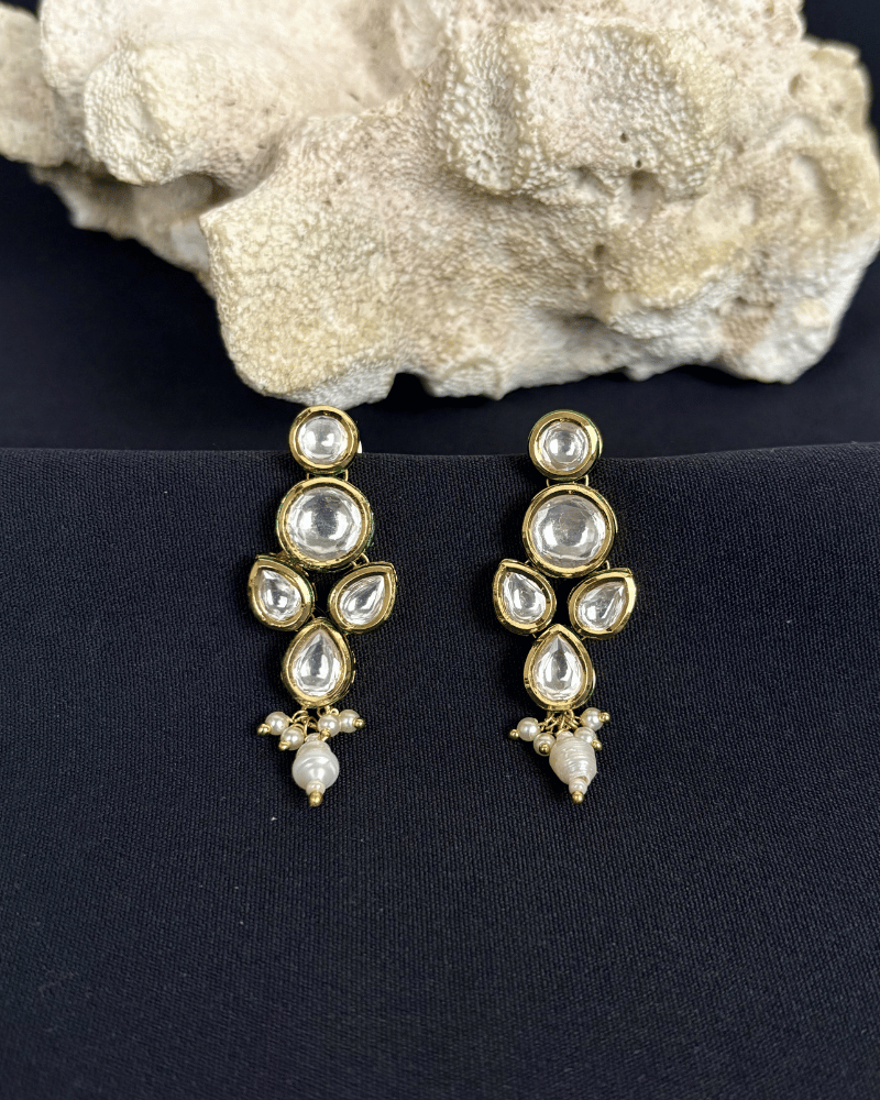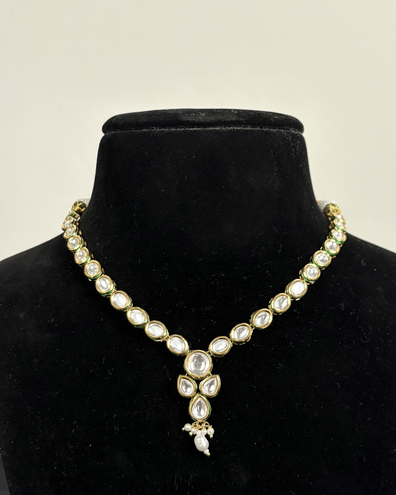 Eshanya Single Line Kundan Necklace With Moti Drop