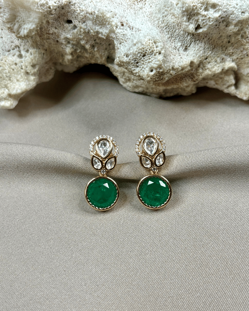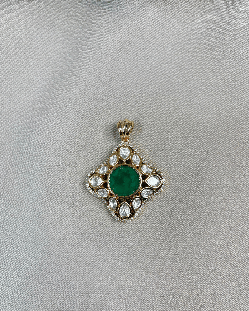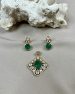 Emerald Clover Polki Pendant Set