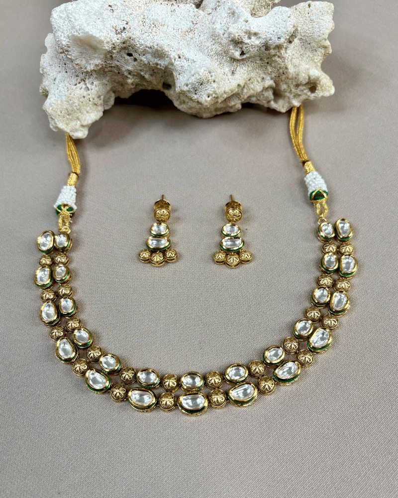 Anushi Double Line Kundan Necklace | 18K Gold Plating | Mint Work