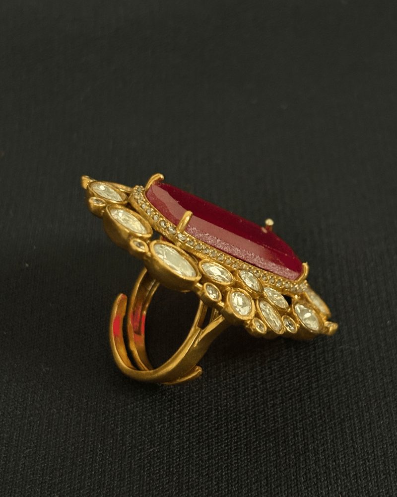 Shahi Surkh Ruby Moissanite Ring | Adjustable Size