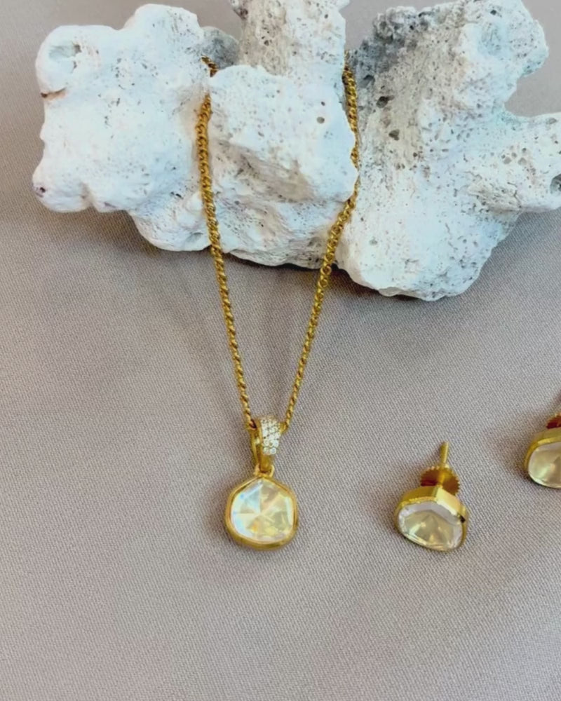 Moissanite Pendant Set (18K Micro Gold Plating)
